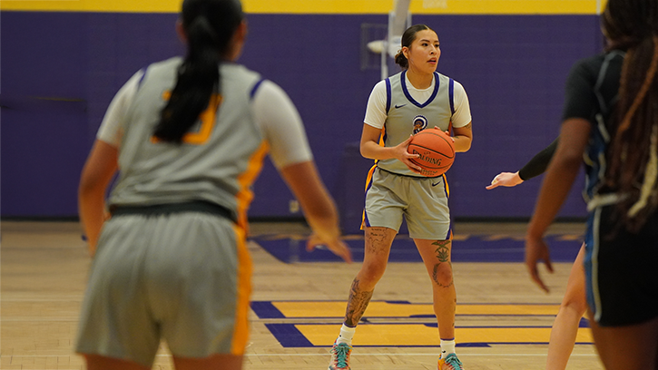 From there, she achieved a lifelong dream — a Division I scholarship to La Salle University. “That was my goal ever since I knew what D1 meant,” she said. “It was everything I’d worked for.” But despite success on the court, the distance from home began to take a toll. “It didn’t feel right,” she admitted. “When something doesn’t feel right, you just know.” After entering the transfer portal, she found the right fit at Haskell — surrounded by coaches and teammates who made her feel at home.